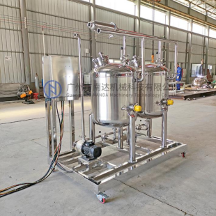 該CIP清洗系統由堿罐、熱水罐以及去程泵和各種閥門、傳感器、清洗管路、電控箱等組成。